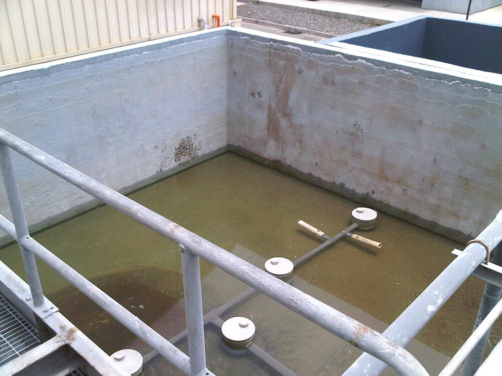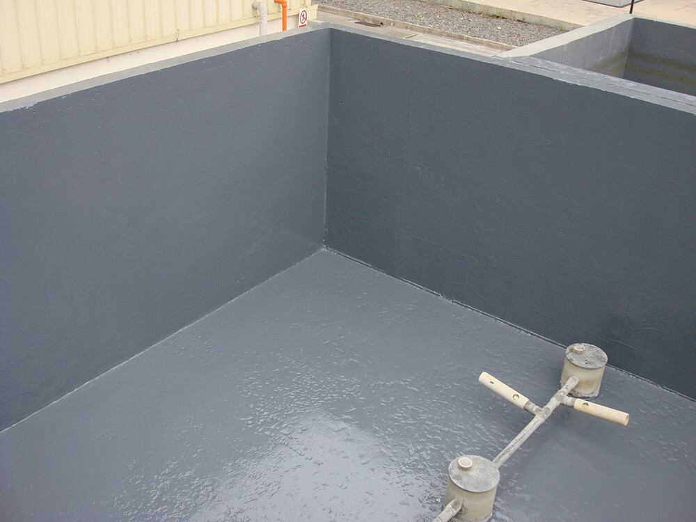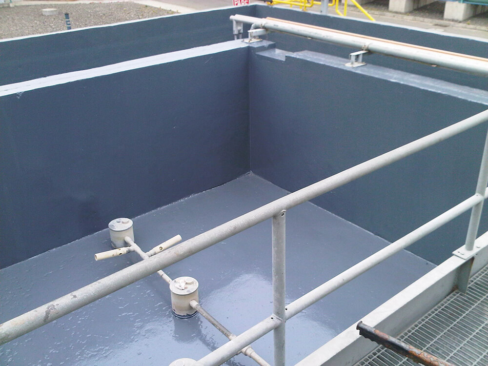 Escarificado de la superficie y recuperación de paredes y piso con DuraFill. Luego, aplicación del imprimante ENECLAD CFS y 2 capas de CHEMCLAD XC para protección ante ataque químico severo. La solución ENECON permite, además, protección al medio ambiente ante posibles filtraciones.