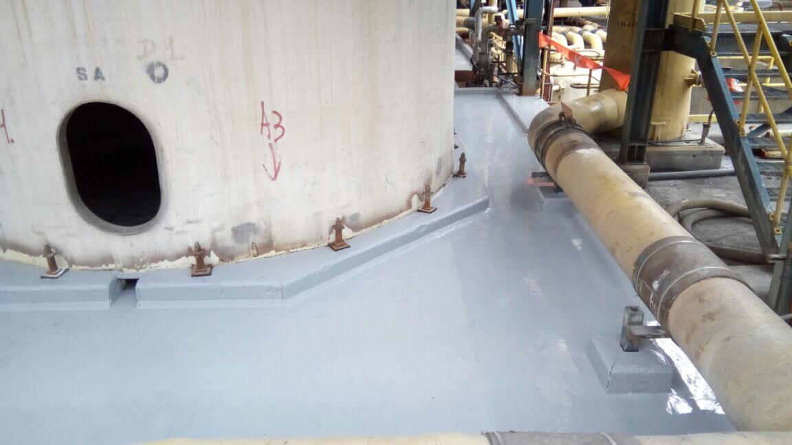 La conclusión de las pruebas fue que la protección de pisos con CHEMCLAD XC resiste perfectamente la exposición a los ácidos concentrados utilizados en la Planta, por lo que eran una excelente alternativa. Tras estos resultados, se procedió a su aplicación en pisos, pretiles de contención, bases de bombas y barandas de escaleras, ya que los sistemas CHEMCLAD pueden ser usados en todo tipo de maquinarias, equipos y estructuras.