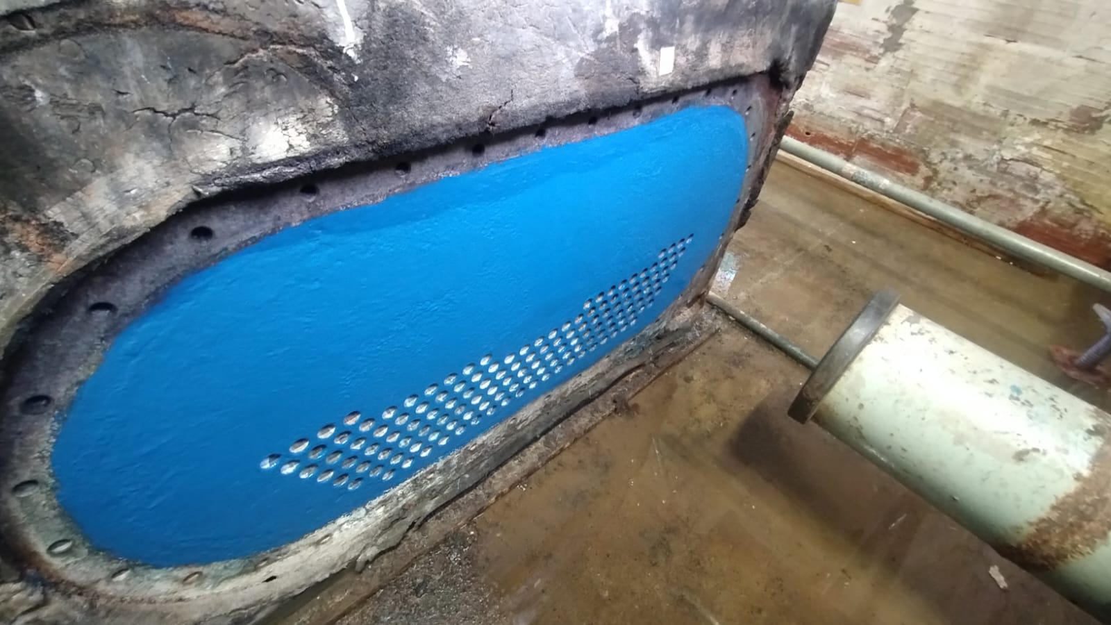 En la primera etapa del proyecto se aplicó METALCLAD CeramAlloy CP+AC para la reparación estructural, restaurando las áreas dañadas y devolviendo la resistencia original al equipo.